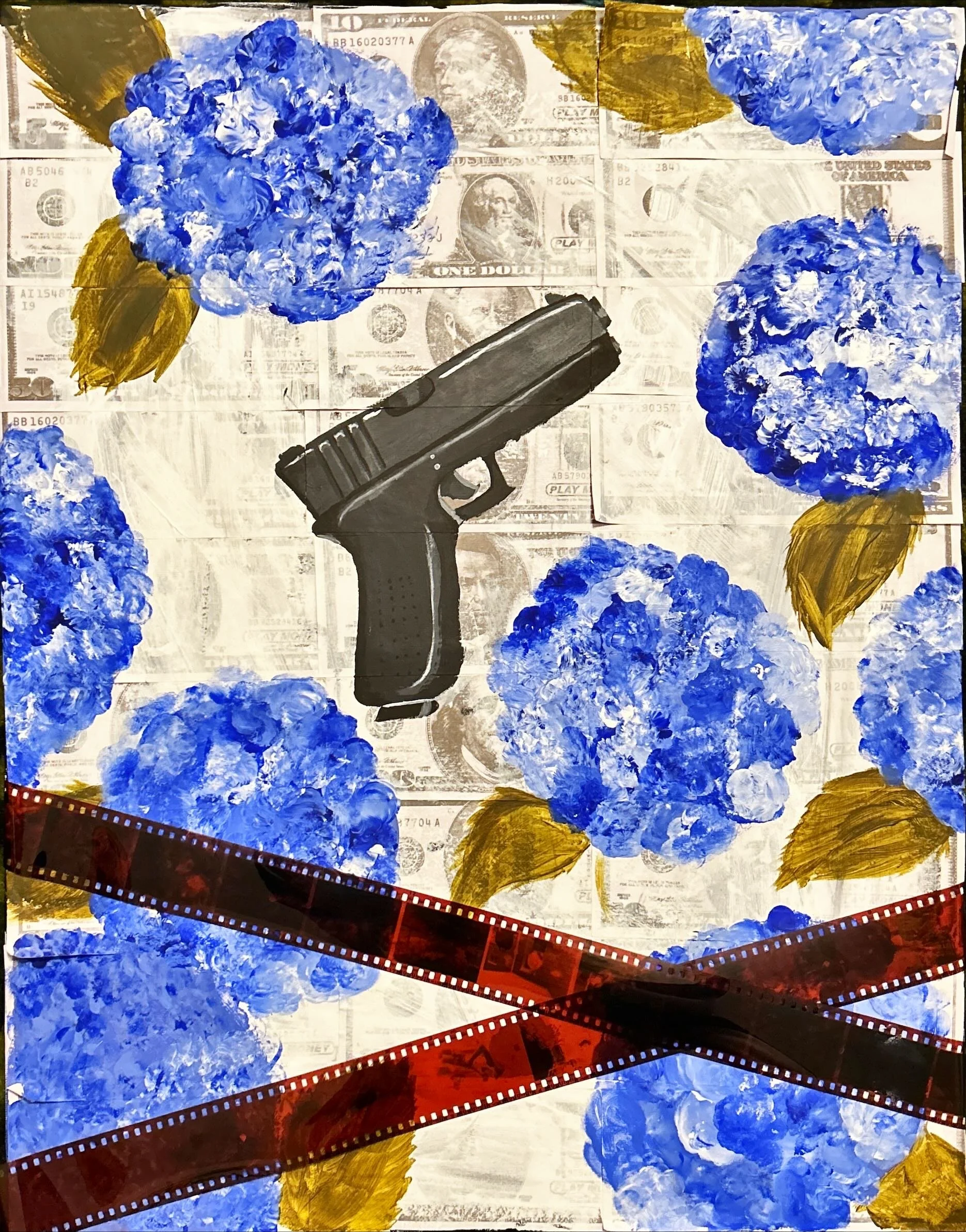 Acrylic Paint, Fake Money, Film, 16”x 20”, 2024